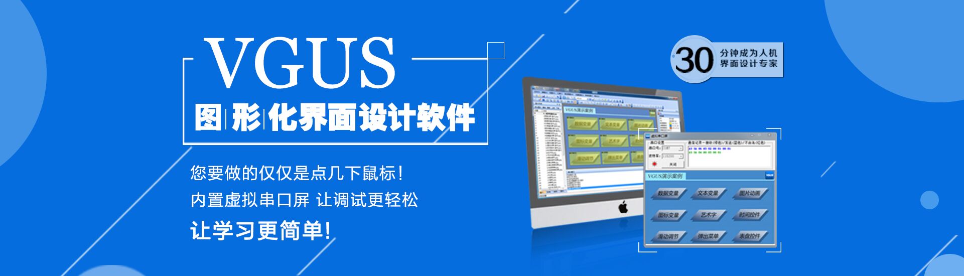秉持讓人機(jī)交互設(shè)計(jì)更簡(jiǎn)單的理念,成功研發(fā)了工業(yè)組態(tài)軟件VGUS(Viewtech Graphical User Software)。該軟件提供了一種圖形化的人機(jī)交互功能設(shè)計(jì)方法,打破了傳統(tǒng)的描點(diǎn)、畫線的界面設(shè)計(jì)模式,降低了儀器設(shè)備的人機(jī)交互系統(tǒng)設(shè)計(jì)難度,解決了人機(jī)交互相關(guān)工作的重復(fù)性設(shè)計(jì)問題,能夠讓設(shè)計(jì)人員把更多的精力集中于產(chǎn)品關(guān)鍵技術(shù)研發(fā)上,專心于專業(yè)產(chǎn)品的開發(fā),提高了儀器設(shè)備的開發(fā)效率。
